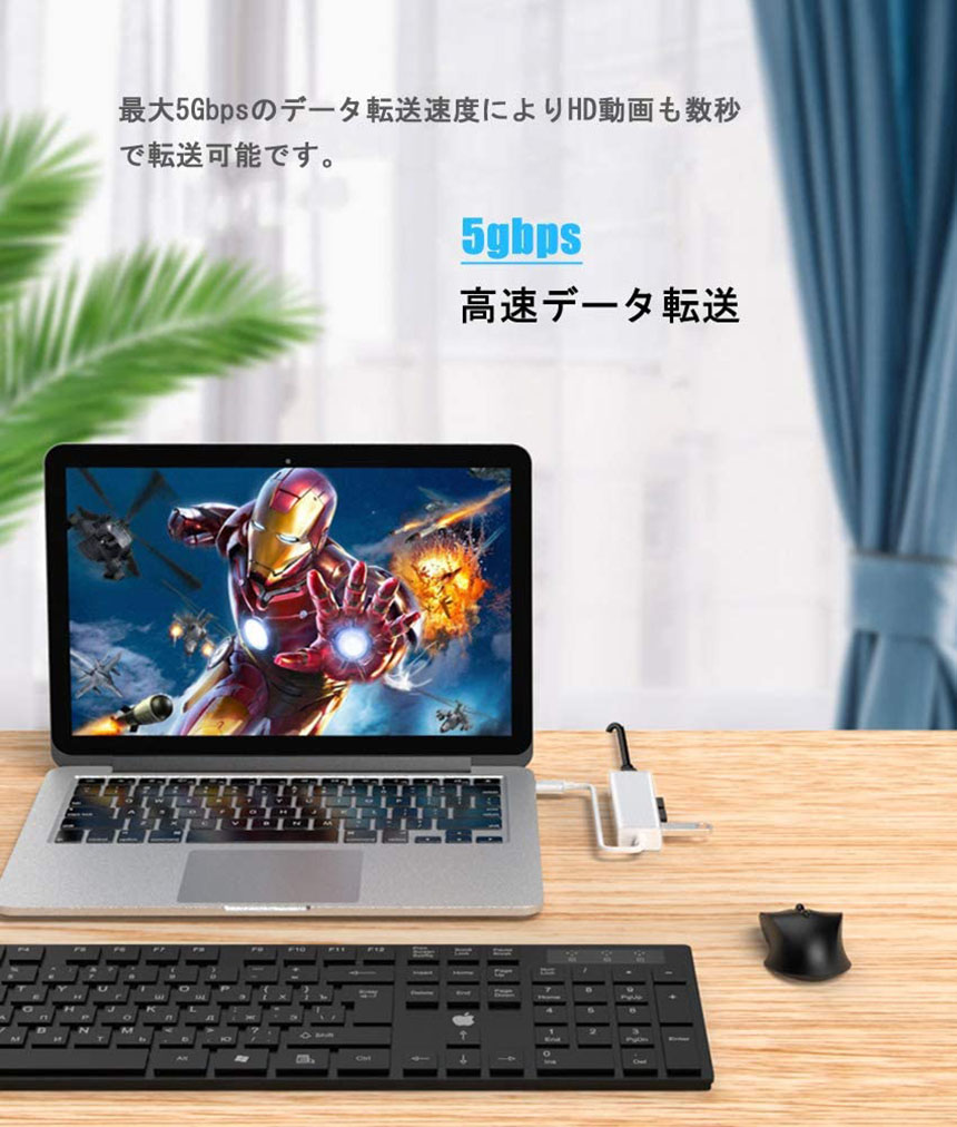 【USB3.0ポート三つ&高速データ転送】USBポートを3つに増設して、マウス、キーボード、USBメモリ、外付けHDDなど様々なUSB機器を同時に利用できます。USB3.0規格を準拠、最大転送速度5Gbps(理論値)、動画や音楽、写真などをより素早くに処理できます。