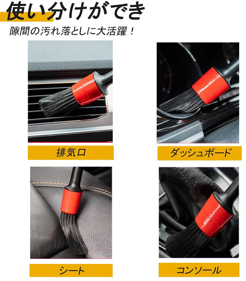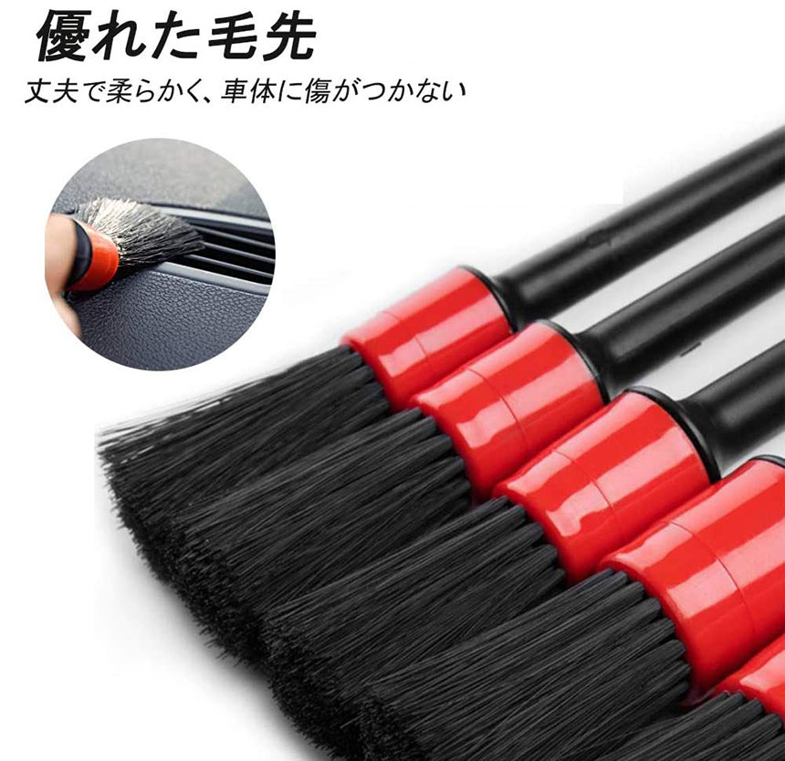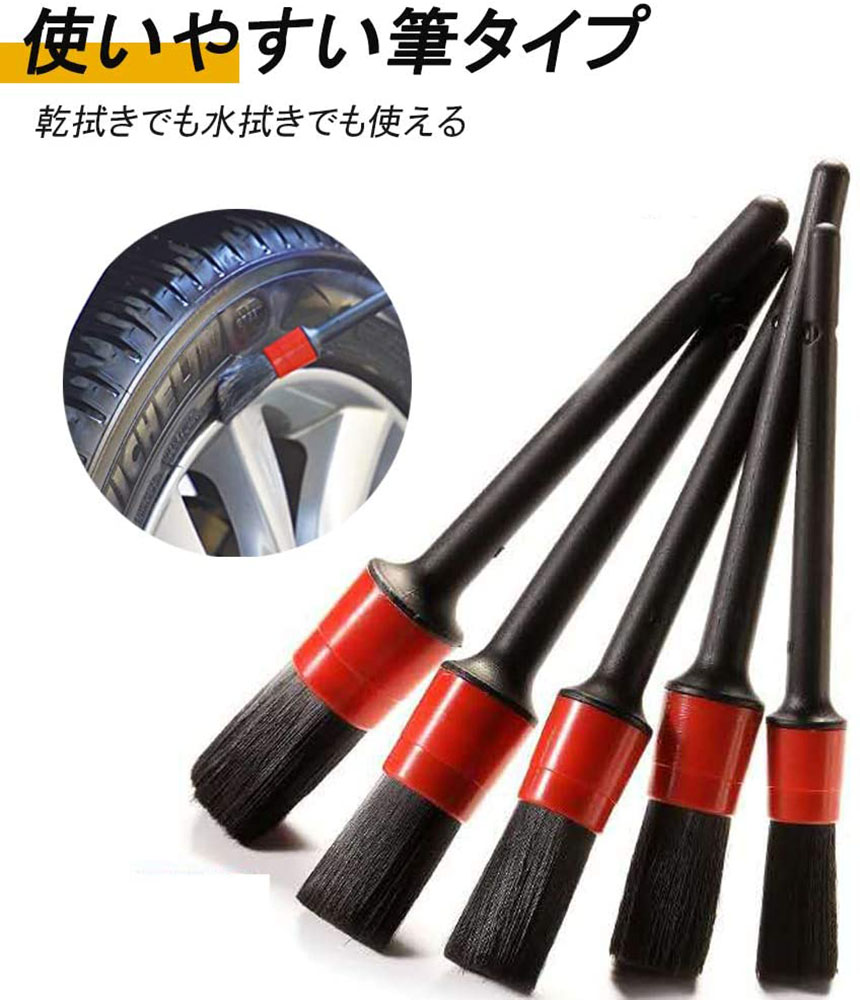 洗車ブラシ ホイールブラシ ディテール 筆 洗車用 はけ ブラシ ボディ用 進化毛先 柔らかい 5本セット タイヤ バイク タイヤホイール エンジンルーム