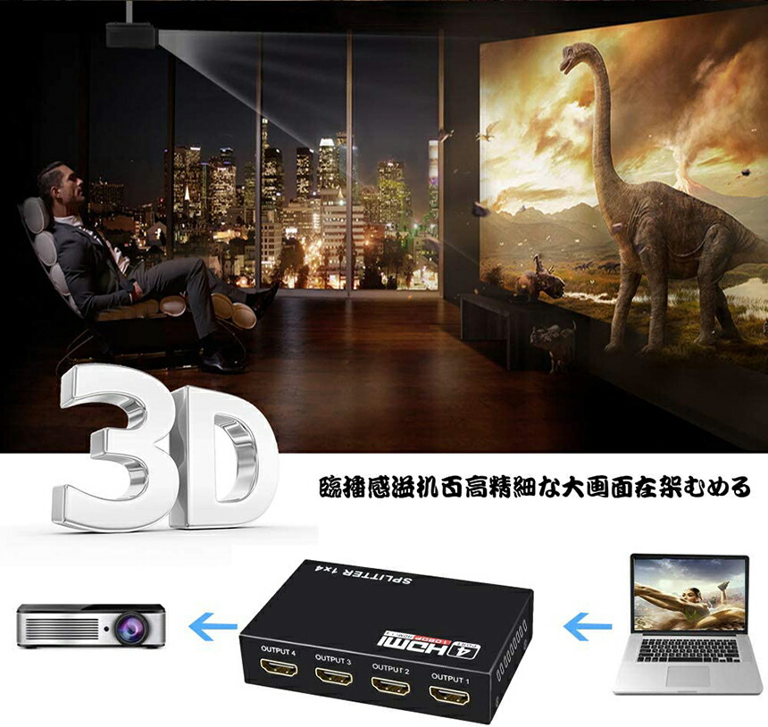 本HDMIスプリッターは4台のhdmi出力機器に同時に出力できます。