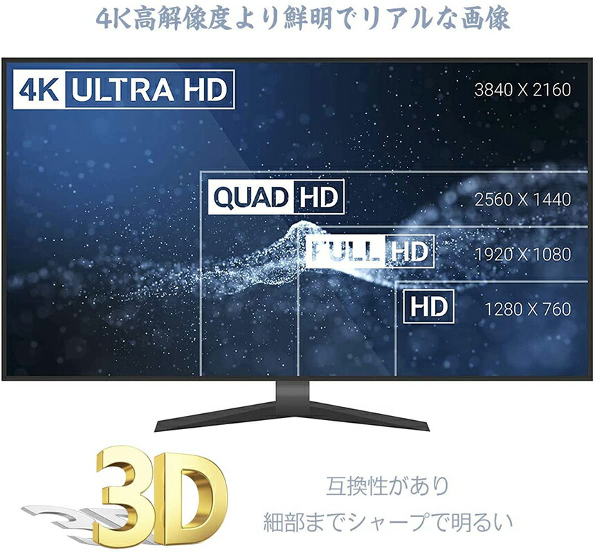 【高解像度】4Kx2K 1080Pと3D映画を支持して、音声と画面が歪めないし、信号も遅延しません。気楽に大画面・高画質を楽しむことができます。DVD、PC、PS3、PS4、HPTVなどに適用し、家庭用や会議等に最適です!