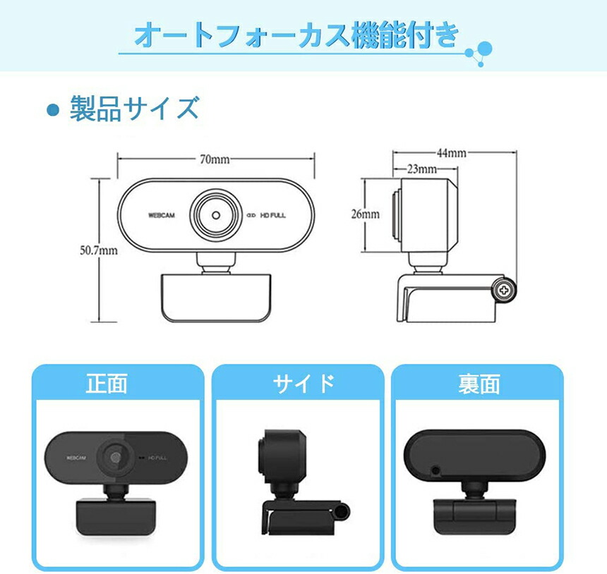 【200万画素+1080P高画質+滑らかな30fps】200万ピクセルで30fps でHD 1080Pビデオをサポートし、PC或はMacで高画質ビデオ会議用にご利用いただけるウェブカメラです。このコンピューターウェブカメラは自動光補正とHDRテクノロジーを利用し、自然光の色と明るさを自動調整する可能で、暗い室内や場所でも鮮明でクリアな画像を実現できています。