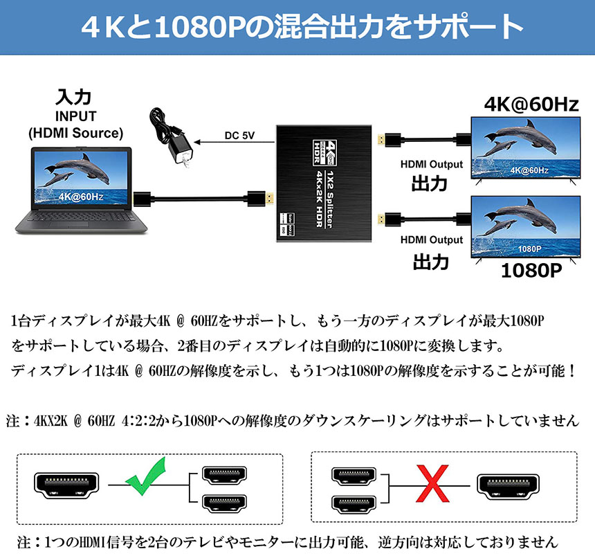 1. 4Kx2K@60Hz 4:2:2から1080Pへの解像度のダウンスケーリングはサポートしていません。