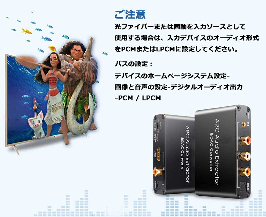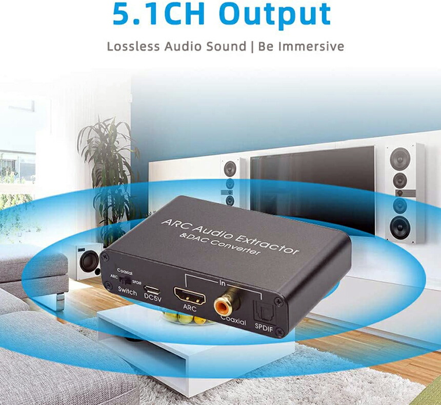 このHDMIARCアダプターおよびDACコンバーターは、ドルビーデジタルプラス以降をサポートしていません。(ドルビーデジタルとDTSをサポートします。)