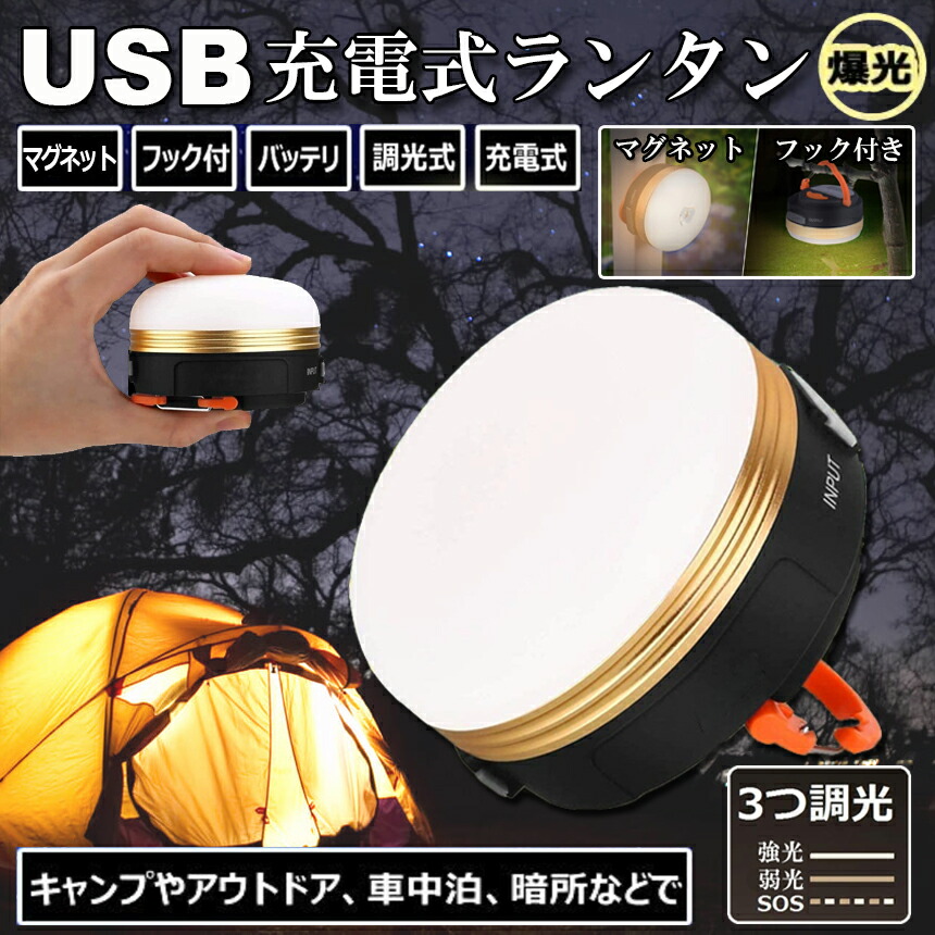 ランタン LED 充電式 懐中電灯 携帯型 テントライト 3つ調光モード マグネット式 フック付き 超軽量 小型 IP65防水 携帯便利 防水キャンプ用品