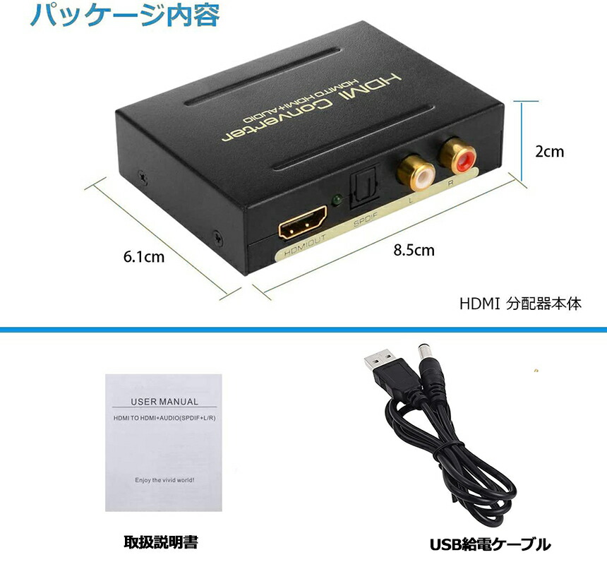 HDMI オーディオ 分離器 音声分離 最大1080P 映 HDMI→HDMI+Audio SPDIF光デジタル+RCAアナログ出力 3種類 音声 分離