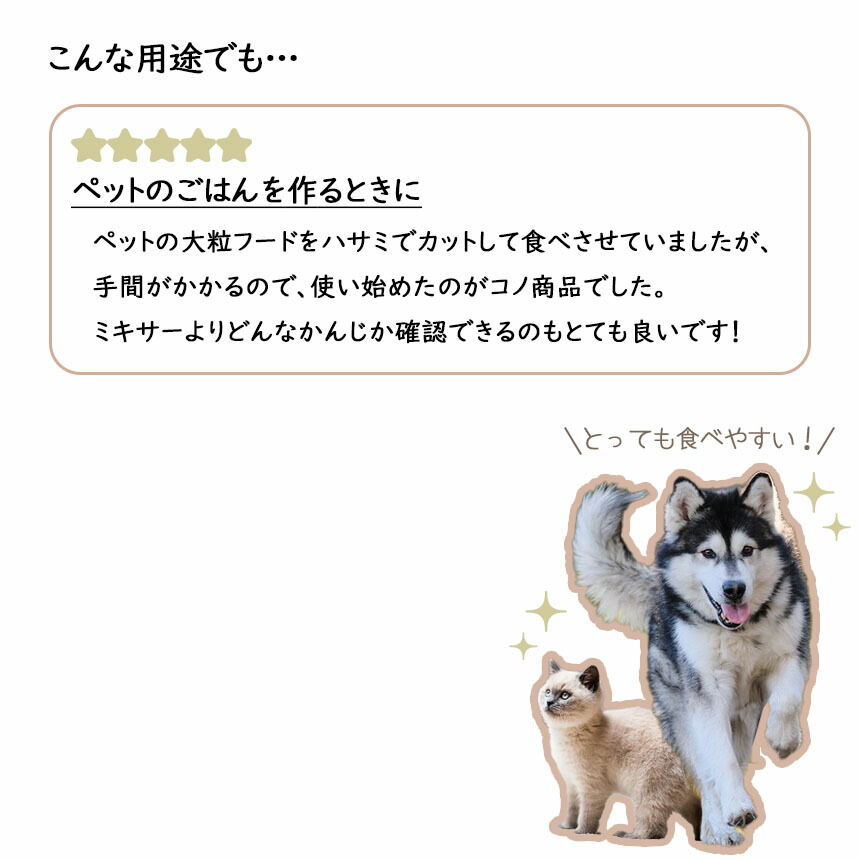 生後間もないペットやシニア期のペットの為にフードやお薬を細かく粉砕することも可能です。