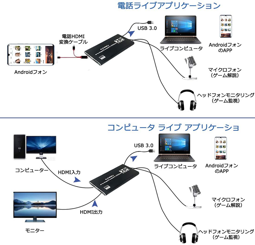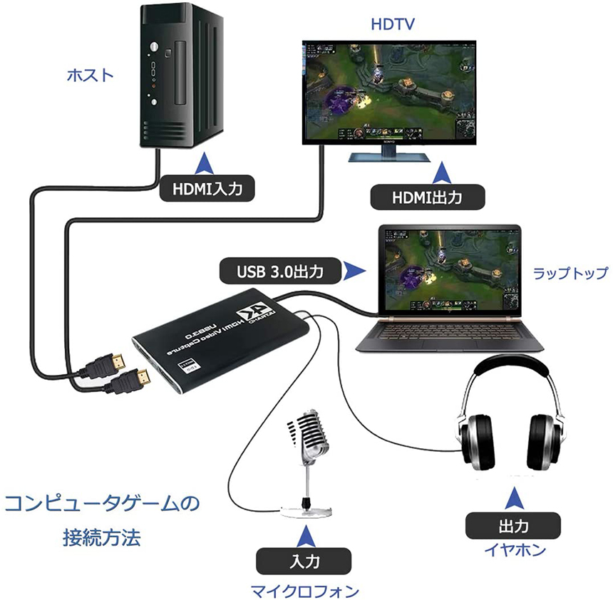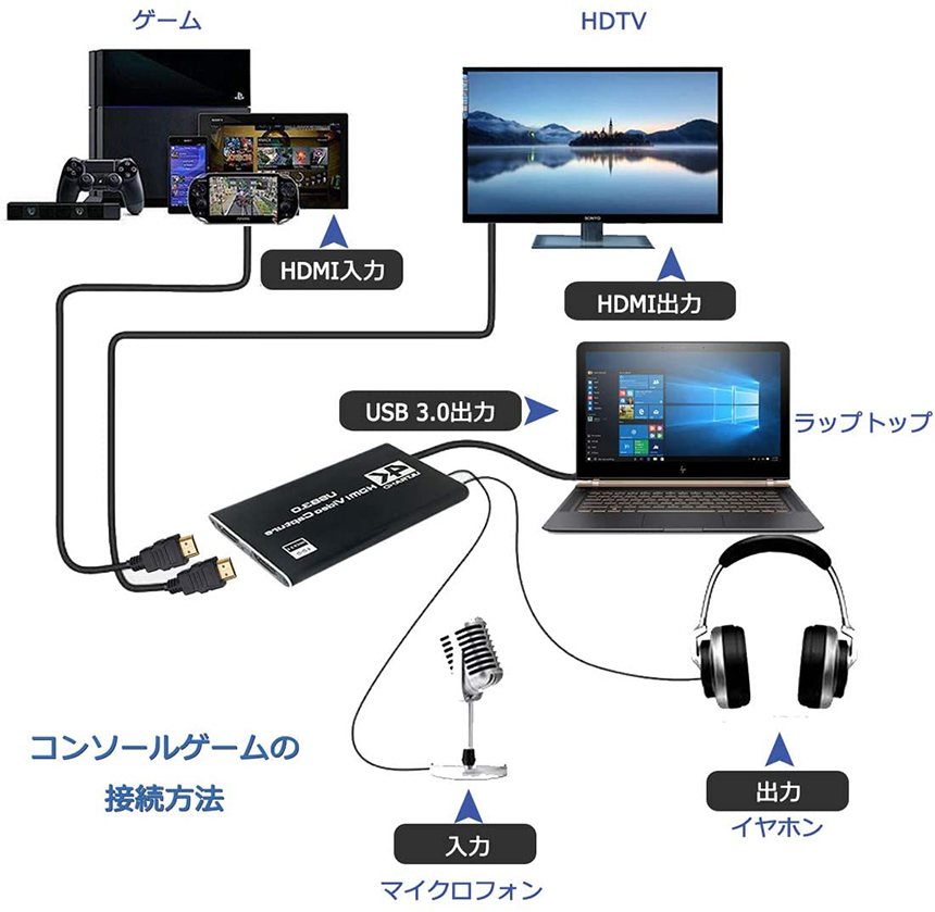 【パッケージの内容】キャプチャ、USB 3.0ケーブ、説明書。 HDMIループアウトポートを使用する際に遅延することがありません。 ライブ配信でゲームをプレイする場合、HDMIループアウトポートは非常に役に立ちます。USB3.0高速転送ポートを介してTwitch、Youtube、OBSなどでライブストリーミングを転送しやすくなり、デバイスで動作します。最新4K 60HZパススルー対応しているバージョンで、 HDMI循環に出力により、1080p/60fpsの高画質映像を録画しながら、究極のゲーム体験を存分に楽しめます!