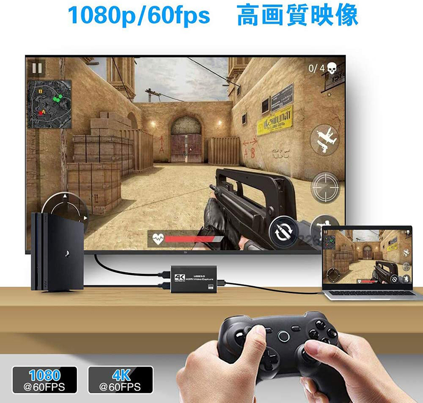 【4Kパススルー対応・遅延なし】最新4K 60HZパススルー対応しているバージョンで、HDMI循環に出力により、1080p/60fpsの高画質映像を録画しながら、パソコンの画面上に超低遅延(約0.1秒)でゲーム画面を表示してプレイ可能。PS4 Pro、XBOX ONE Xなどの4K出力対応のゲーム機に繋げば、4K表示の画面でプレイして同時に配信・録画できる。4Kパススルー出力機能は4K HDRに対応で、究極のゲーム体験を存分に楽しめます!