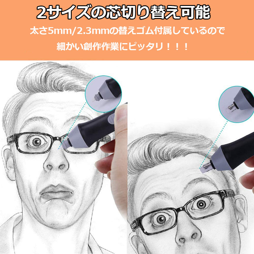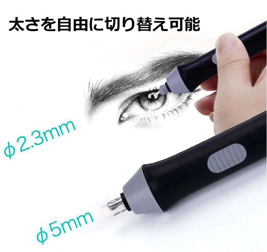 調整可能:2サイズ消しゴム詰め替え用:φ2.3mmとφ5mmの消しゴムを収納するための2サイズ消しゴムホルダーが含まれています。 大きい方を太いハイライトに、小さい方を髪のような小さな部分を消すために使用します。(直径2.3mm消しゴム 10個、直径5mm消しゴム 12個)