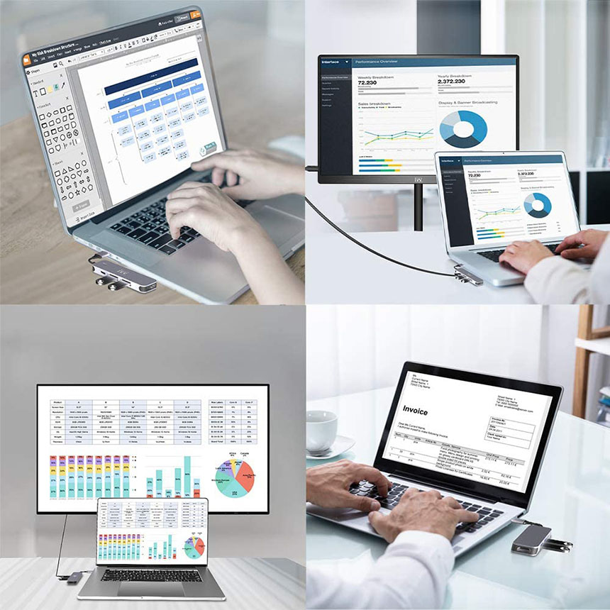 ◆アダプタを使用して、MACブックまたはChromeブックなどの標準USB-Cインターフェイスホストのイメージをミラーリングおよび拡張し、HDMIと同じ画面効果を実現できます。