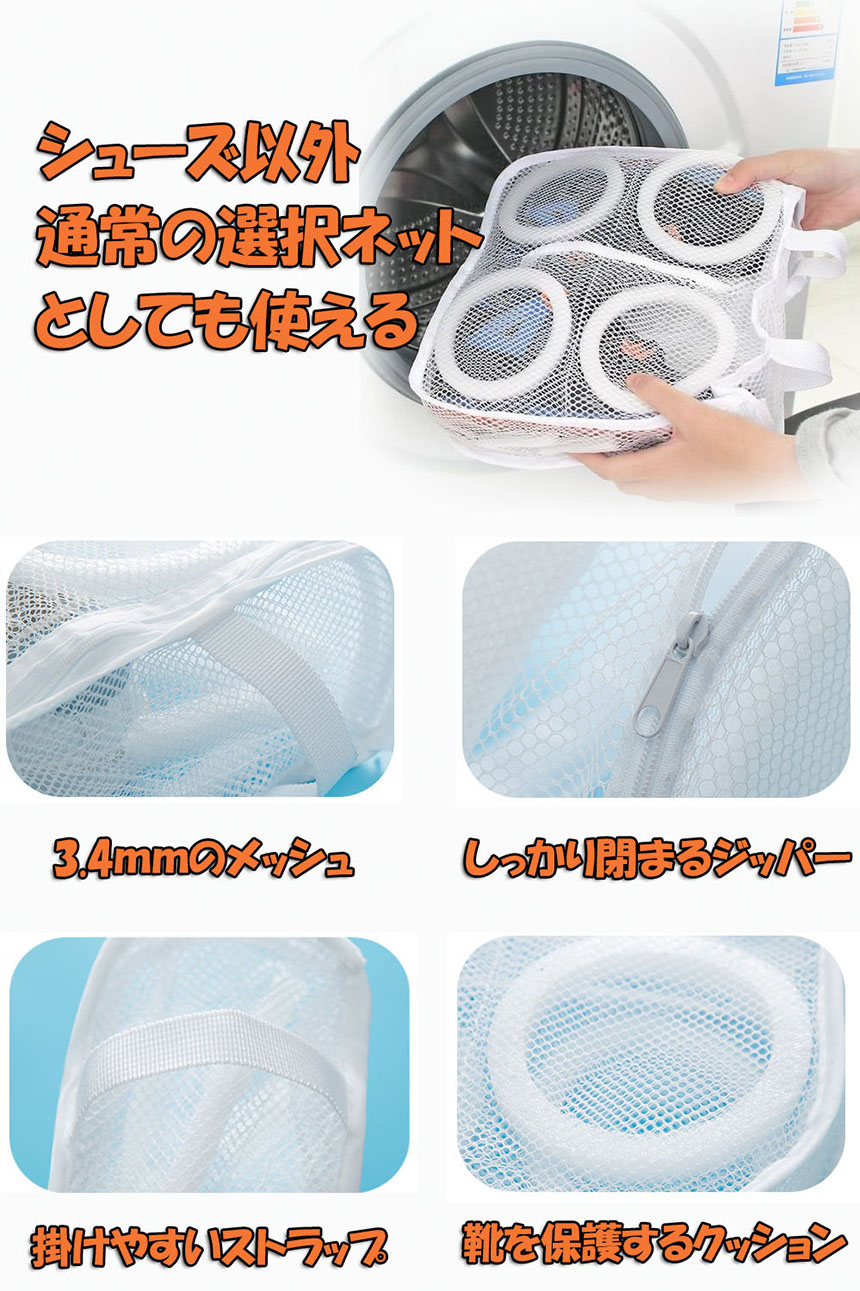 【靴を洗濯機で簡単丸洗い】面倒な靴洗いが、ご自宅の洗濯機で簡単に! ご使用方法は、靴を洗濯ネットに入れていつも使用している洗濯機に洗剤と 一緒に入れるだけ。お子さんの上履きや汚れやすい靴に、毎日の忙しい家事の時間を節約することができます。スリッパなどの室内履きにも使用して頂けます。