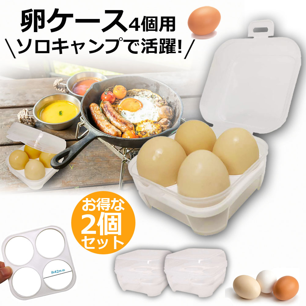 4個用:1ケースに4個の卵が収納可能となっております。振動による衝撃をやわらげる構造なので、割れにくくなっています。生卵、ゆで卵両方収納可能なため、ピクニックやアウトドアなどに大活躍のアイテムです。フタがしっかりしているので、たまごをたくさん使う人でも積み重ねることができ、他のものを載せることができるのでとても便利です! 卵が割れるのを防ぐカバーロックで簡単に閉じることができます。 持ち運びに便利なハンドルです。たまごの隙間にキッチンペーパーなどを挟みクッションにすると良いです。