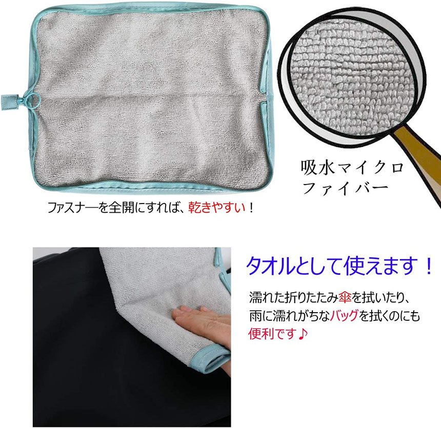濡れた折りたたみ傘をそのまま入れてOK!超吸水マイクロファイバー 傘カバー!鞄にいれても濡れない・汚れない、便利な折畳み傘専用収納ポーチです。