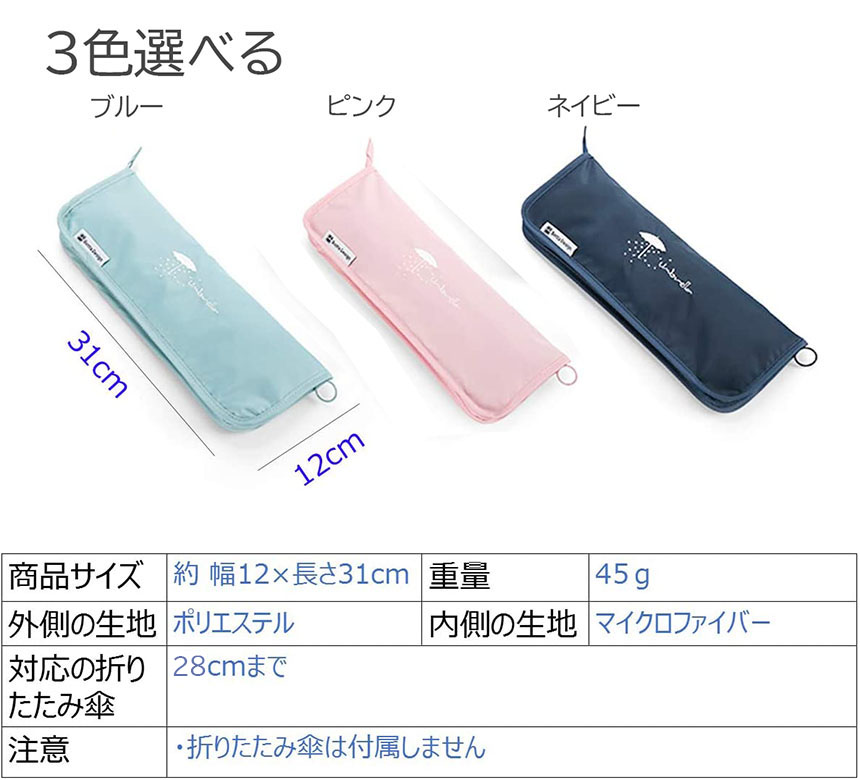 傘ケース マイクロファイバー 折りたたみ傘袋 傘カバー 超吸水 傘収納 3色 携帯便利 軽量 超吸水ボトルポーチ 28cmまでの折りたたみ傘対応