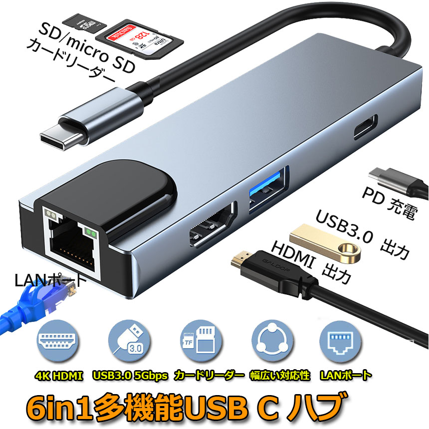 【6-in-1 USB-C ハブ】USB-C ハブには1x 標準USB3.0ポート、1x 4K HDMIポート、1xLANポート、1x Type-C PD充電ポート、SDおよびTFカードスロットがあります。在宅勤務、ラップトップで作業するための周辺会議を制御するための6つの接続ができます。Nintendo Switch、Google Chrome OS、Windows 7/8/10、XP、Vista、Linusに対応できます。ご注意:Nintendo Switchの場合はHDMIポート出力対応、LANポートは非対応です。