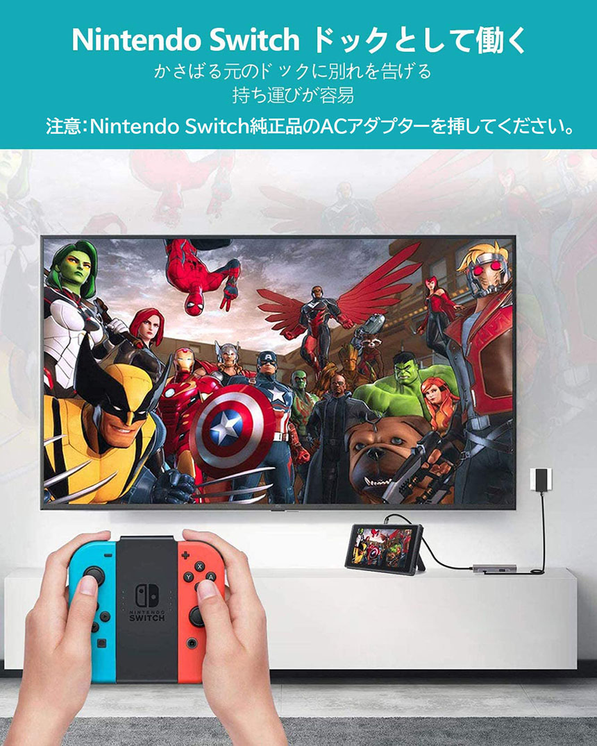 【幅広い互換性】USB-CハブはNintendoswitch/MacBook Pro 2018/2019/2020、MacBook Air 2019/2020、Chromebook Pixelbook、Dell、HP、Huawei Mate 20 / P20、Surface Pro 7およびSurface Book 3は、Samsung S8 / S8 Plus / S9 / S9 Plus / S9 Plus / S10およびUSB Cポートを備えたその他のデバイスに属しています。