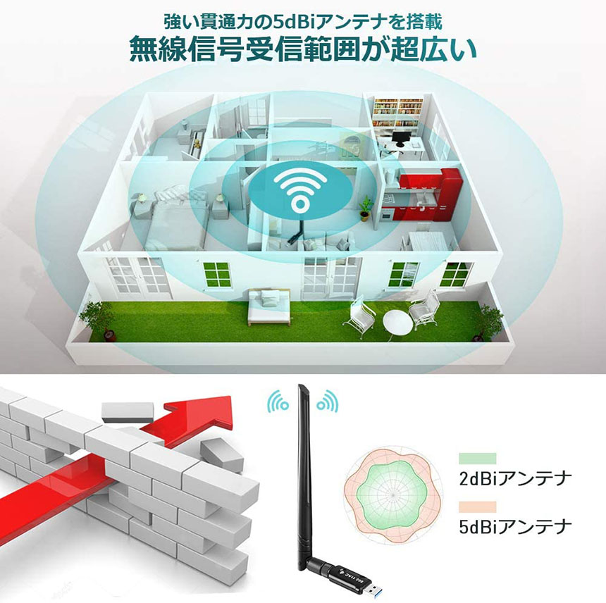 【5dBiアンテナ・広範囲】360度全方位5dBi高増幅アンテナは高RFパワーを保証します。従来2dBi / 3dBi アンテナ型WIFI子機より電波を強化し、壁などの障害を越えて電波をもっと広い範囲に拡張できます。5dBiアンテナは、信号が弱い場合でも接続するのに役立ちます.最適な信号を拾う必要がある場所に簡単に設置できます。