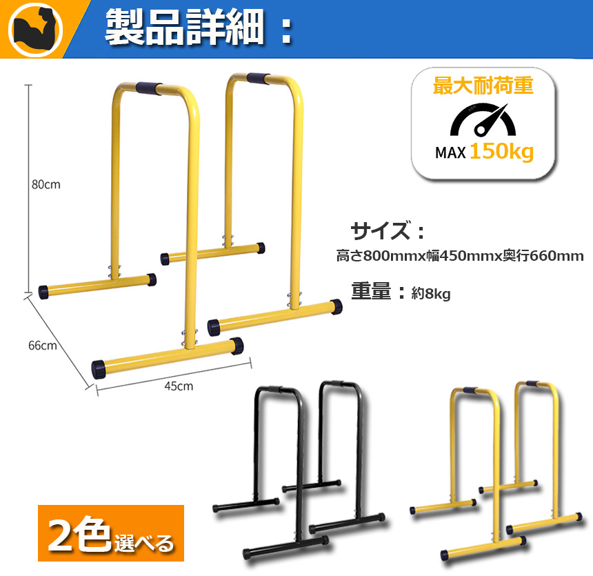 【全身の筋肉を強化できる】1台で胸から腰、背にかけて全身の筋肉を強化できるディップススタンドです。快適にエクササイズするためのソフトグリップ加工なので、握りやすくて汗を吸い取り、滑りにくいです。男女を問わず様々なレベルでのトレーニングができます。