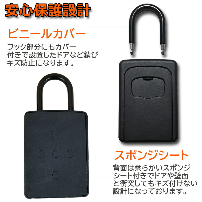 【フックが外せるもっと簡単に取り付け】キーボックス上部のU型吊り輪は完全に取り外して分離できる設計を採用します。吊り輪を取っ手、自転車などに掛けて、簡単に固定できます。また、ネジ止めで本体を壁に取り付けることができます。取り付けの専用道具を贈呈していますので、自力で簡単に取り付けられます。