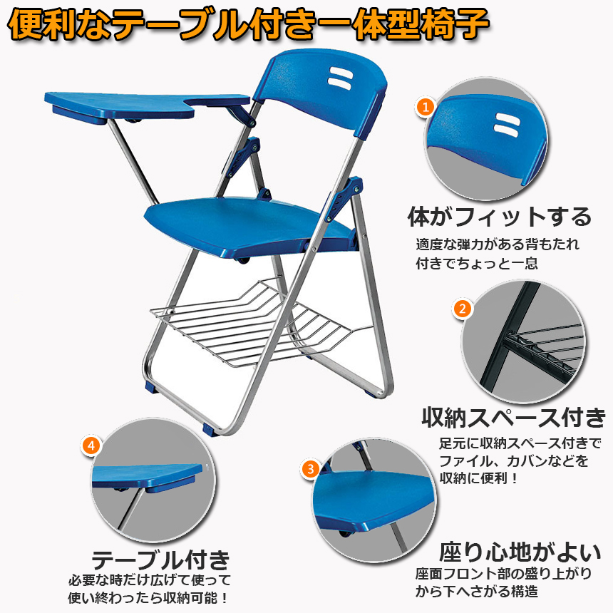 【テーブル&収納スペース付き】テーブルつきで集会や会議で使える多機能装備。会社や学校などでの講習会、在宅勤務などで便利に使用。