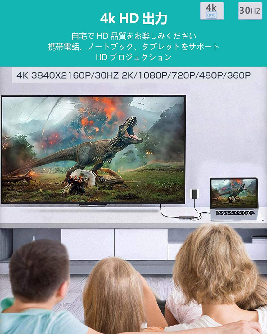 【4K HDMIビデオ出力】USB C HDMIアダプタで4K UHD或は1080Pの映像をHDTV、デイスプレイやプロジェクターに出力できます。アダプタミラーリングとMACブック、Chromeブック、または他の標準USB-Cインターフェースを使用し、パソコン本体に供給し、HDMIと同じスクリーン効果を実現できます。