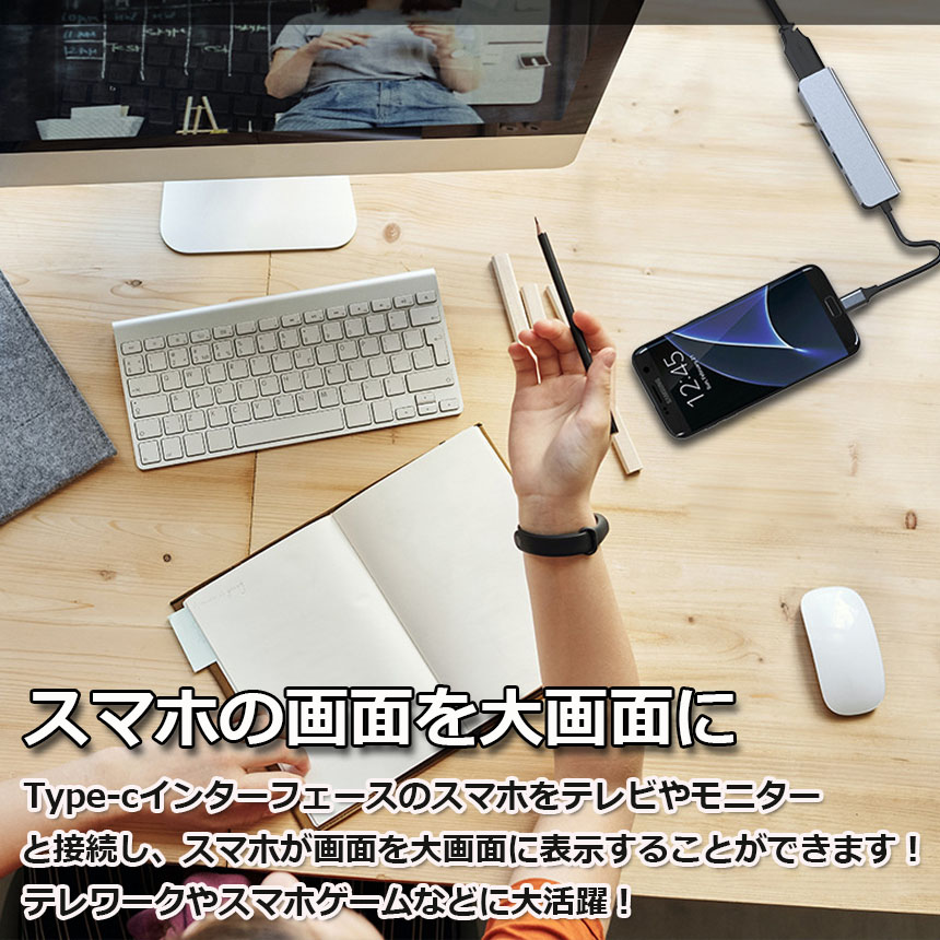 【4K HDMIビデオ出力】USB C HDMIアダプタで4K UHD或は1080Pの映像をHDTV、デイスプレイやプロジェクターに出力できます。アダプタミラーリングとMACブック、Chromeブック、または他の標準USB-Cインターフェースを使用し、パソコン本体に供給し、HDMIと同じスクリーン効果を実現できます。