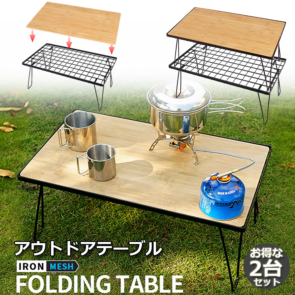フィールドラック 折りたたみ ラック 2台セット メッシュ アウトドア テーブル キャンプ 用品 グッズ 調理台 折りたたみ ローテーブル ミニテーブル