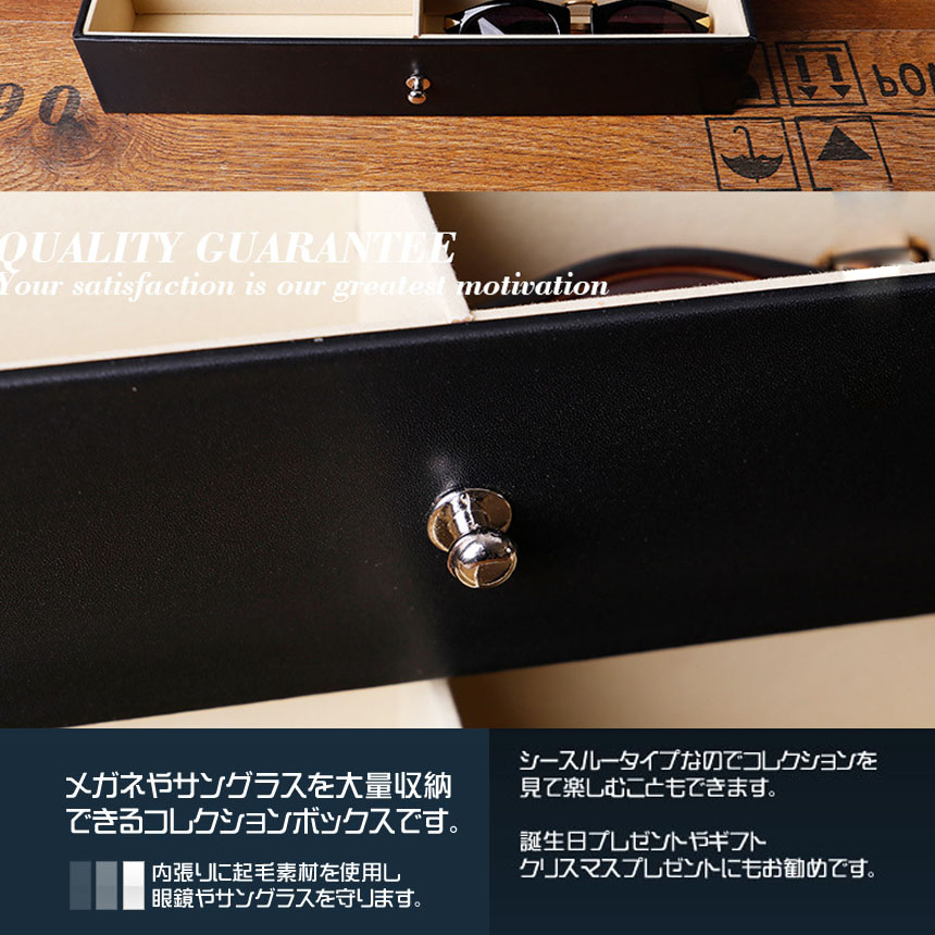 【メガネケース】眼鏡やサングラス等を収納・展示できます,保管にも適したタイプで、蓋をすれば日焼けや大切なコレクションへの被害、損傷を防げます。