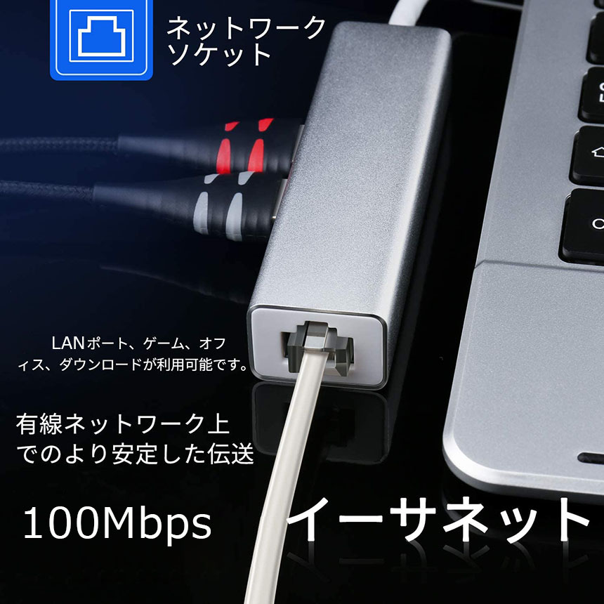 【安定なイーサネット】:本製品のLANポートは100メガバイトイーサネットに対応します。