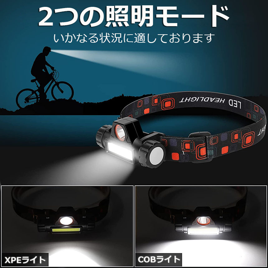 【デュアル光源/角度は90度調節可能】:XPEライトとCOBライトは、様々なシーンをカバーすることができます。LEDの明るさは300ルーメンに達すことができます。 照明角度は90度に調整でき、必要によって角度を自由に調節できます。
