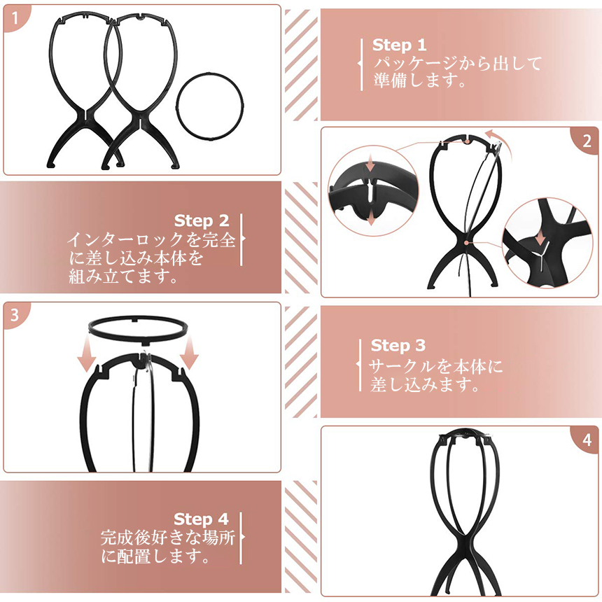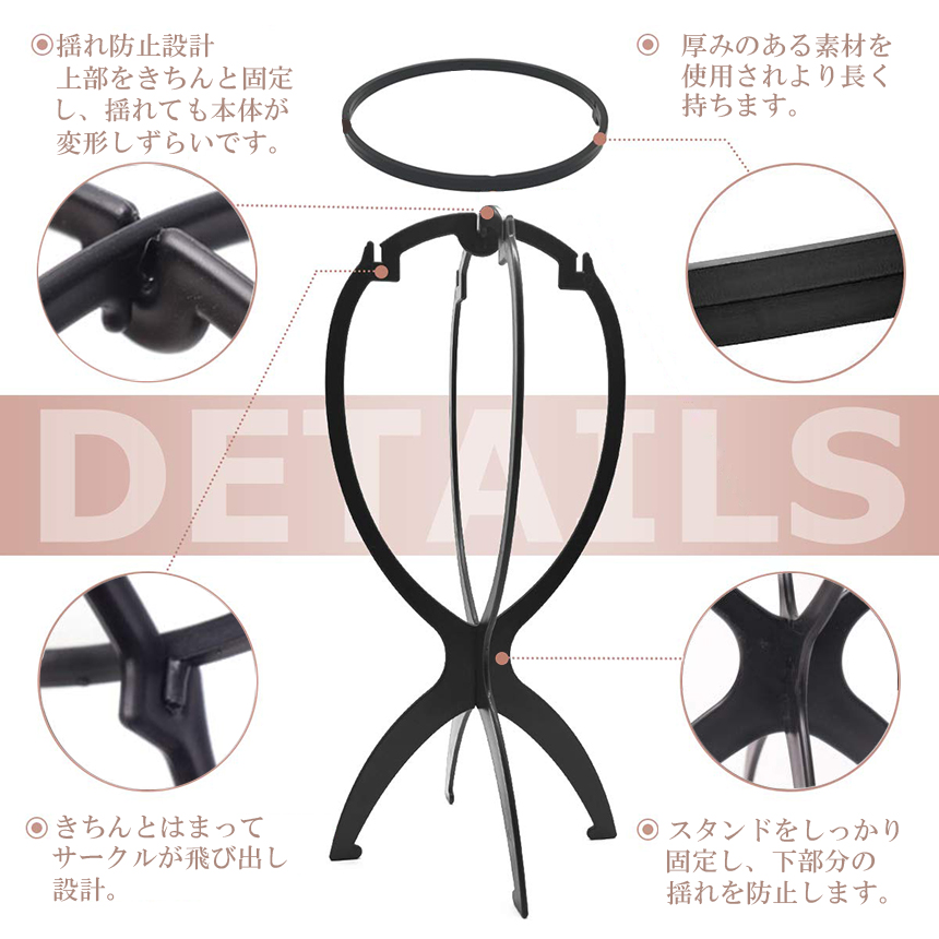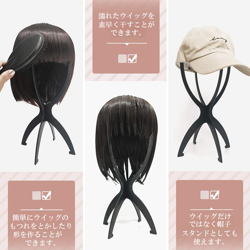 【ウイッグスタンド】35cmウィッグスタンドホルダー。安定した丈夫なデザインで複数ウィッグに最適なウィッグホルダー。女性用ウィッグスタンドはショートウィッグに最適です。
