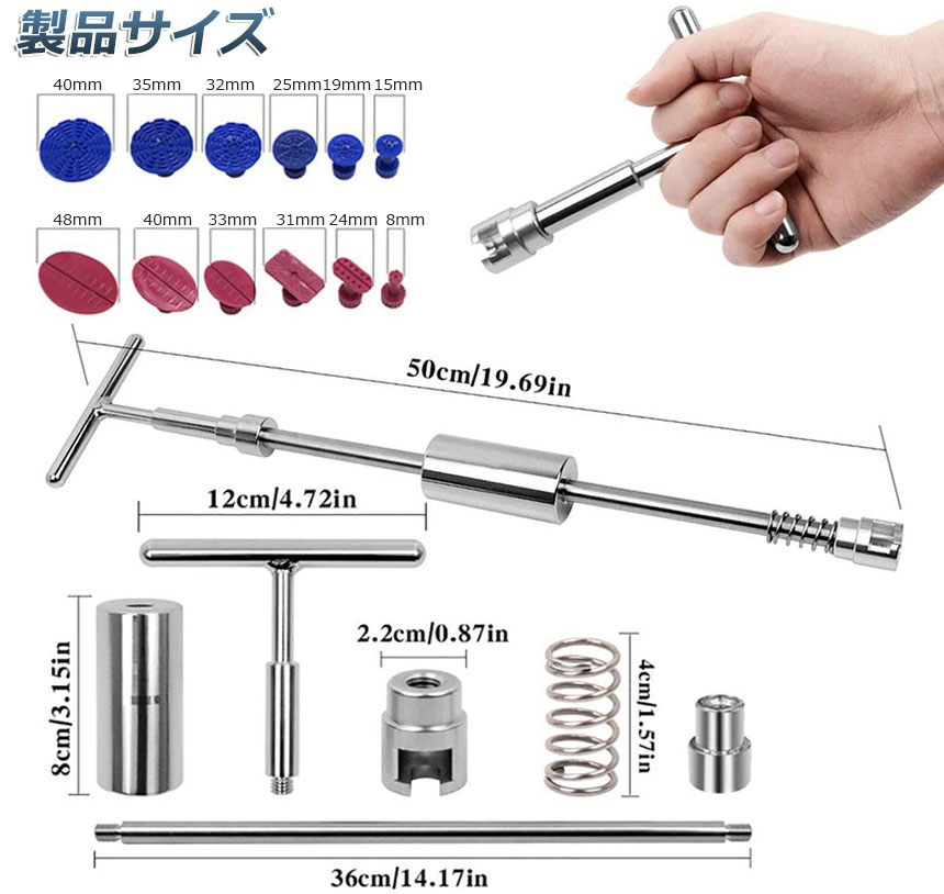 【サイズ異なる吸盤】応用範囲:車&バイクのボディ&フェンダーの補修や、ドア、冷蔵庫、洗濯機などの凹み修理もできます。凹みの大きさによってタブを利用してください。