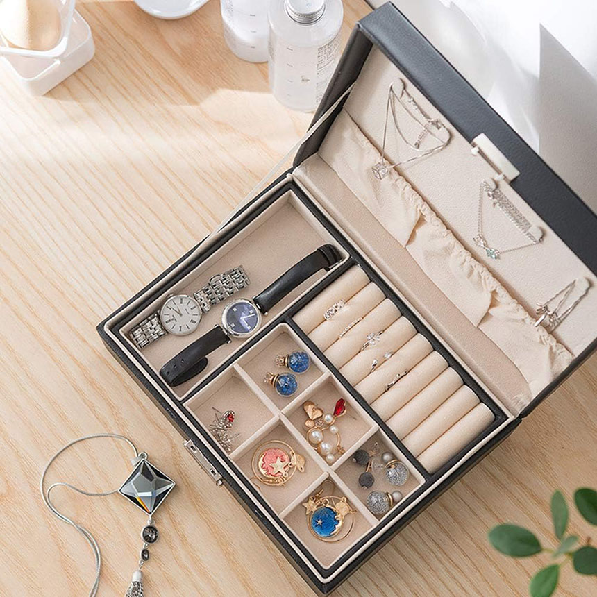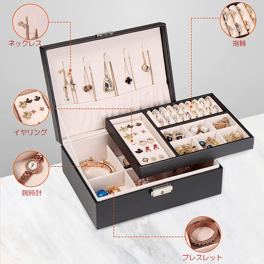 アクセサリー収納ケース ジュエリーボックス 大容量 アクセサリー収納ケース 2段 ブラック アクセサリーケース アクセサリー入れ リング ネックレス 小物入れ ピアス 指輪 おしゃれ