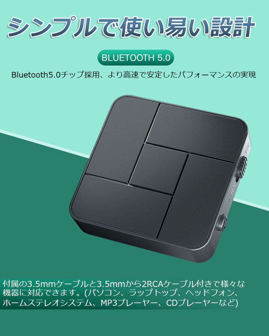 【多機種対応&Bluetooth V5.0】一般的な3.5mmイヤホンジャックを採用しているので、3.5mmプラグ/ジャックのイヤホンやオーディオ機器(TV、パソコン、カーオーディオなど)に対応します。また、Bluetoothバージョン5.0では通信速度、範囲、容量がそれぞれ大幅に向上したことで、遅延を最小限に抑え、映像と音声の時間差を感じること無く快適に楽しめます。Bluetoothに対応していないテレビに最適です。