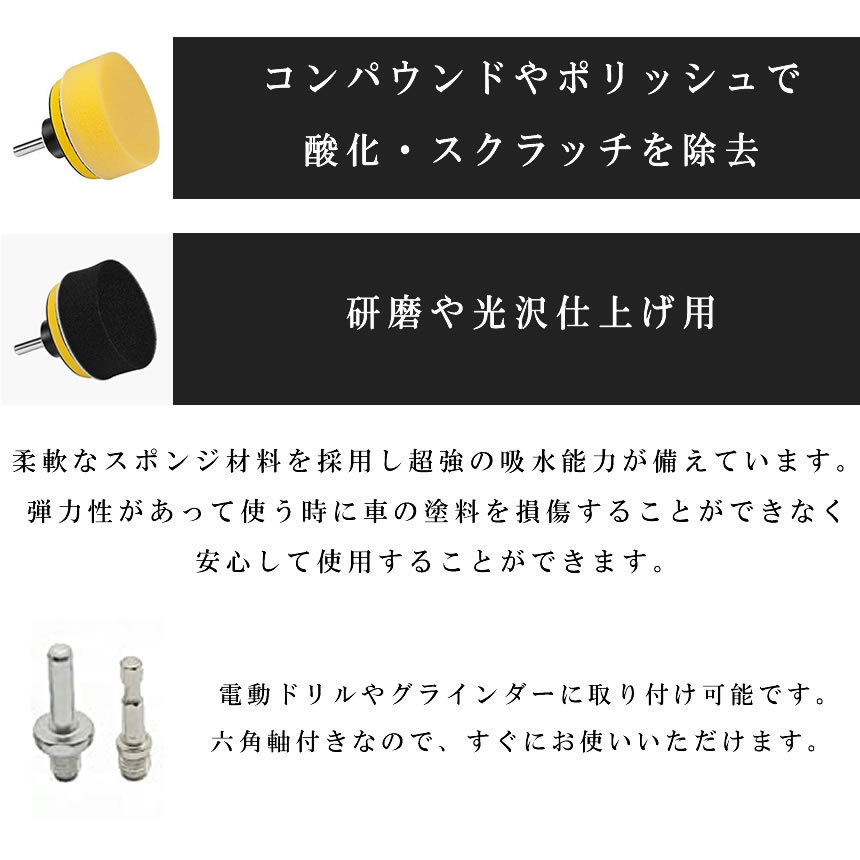 【愛車に傷つかず】 ポリッシャー用スポンジは柔軟なスポンジ材料を採用し、超強の吸水能力が備えています。弾力性があって、使う時に車の塗料を損傷することができなく、安心して使用することができます。