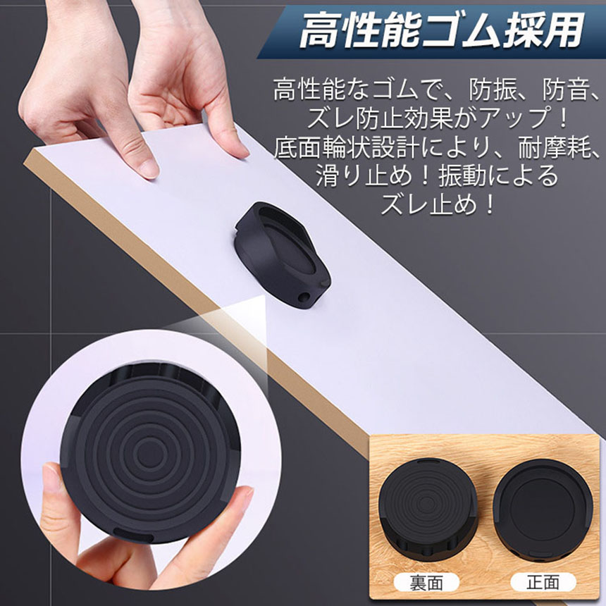 【防音・防振】洗濯機用防振ゴムは高性能なゴムでできており、耐摩擦、振動?騒音軽減に優れています。脱水時の異音と振動をしっかり吸収できて、滑り止め効果、振動によるズレ止め効果を発揮します。