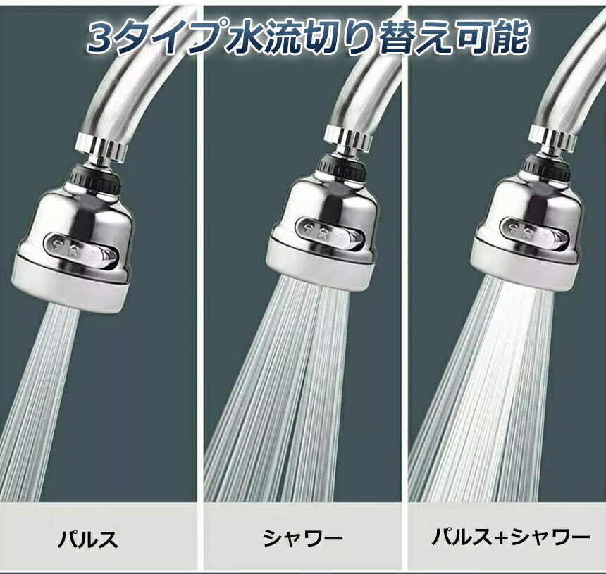 【3段階モード】左右に回転するだけで水の流れが変わります。パルスモード:試験管など手を中に入れない小径容器に最適です。シャワーモード:色々な汚れた物の洗うに適しています。パルス+シャワーモード:特に深い汚れをきれいにするために使用されます。用途に応じて各モードを簡単に変えることができます。