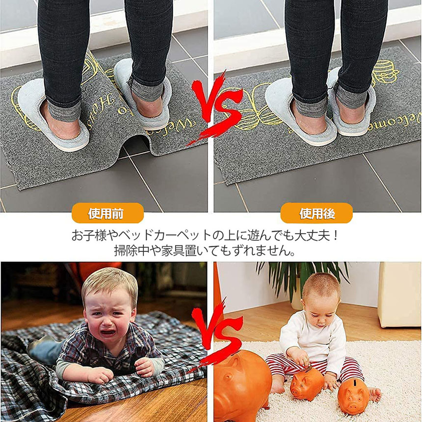 【カーペットをズレのストレスから解放】:カーペットを敷いたけどすぐにずれてしまう、カーペットの端の方がめくれて足が引っかかってしまうということはありませんか。本社のカーペットすべり止めシートはそんな悩みを解決します。玄関マット、キッチンマット、ジョンとマット、カーペット、ラグ、ペットマット、ホットカーペット、タイルカーペット、ムートンの裏側に滑り止めシートを貼るだけで、簡単ににズレ防止!