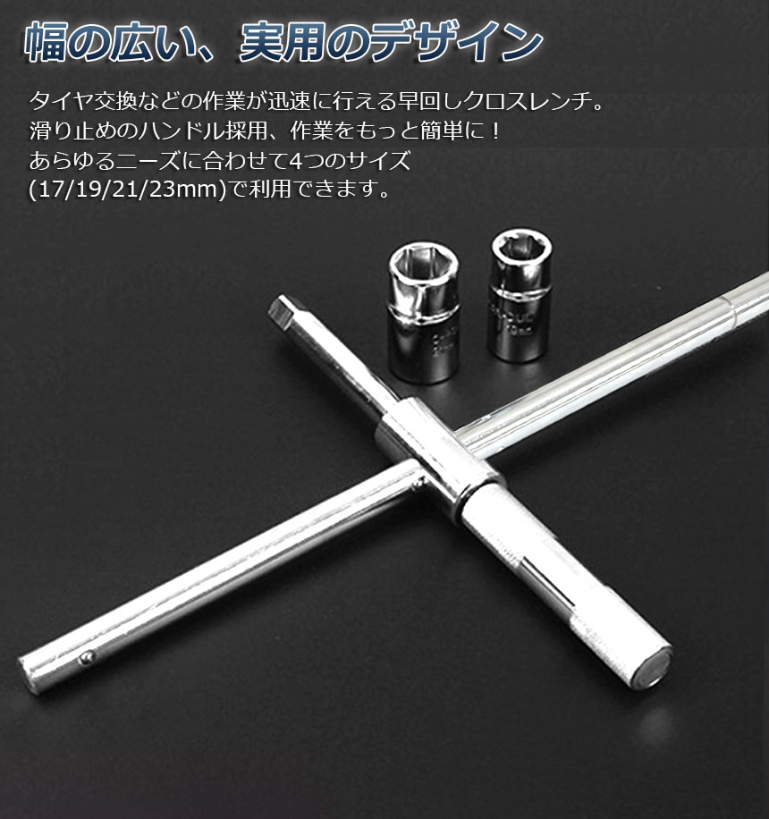 十字レンチ クロスレンチ 分解式 T字 十字 空転式 回転可能 フリーグリップ 早回し 17mm 19mm 21mm 23mm 車 タイヤ交換