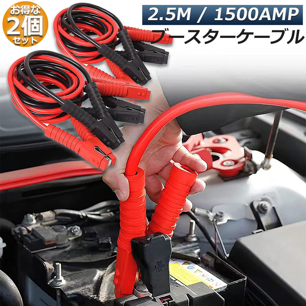 ブースターケーブル 2セット ジャンパーケーブル 2.5M 1500A 安全性 耐久性 耐熱防寒 幅広い車種 12V 24 バッテリー上がり 電気 緊急