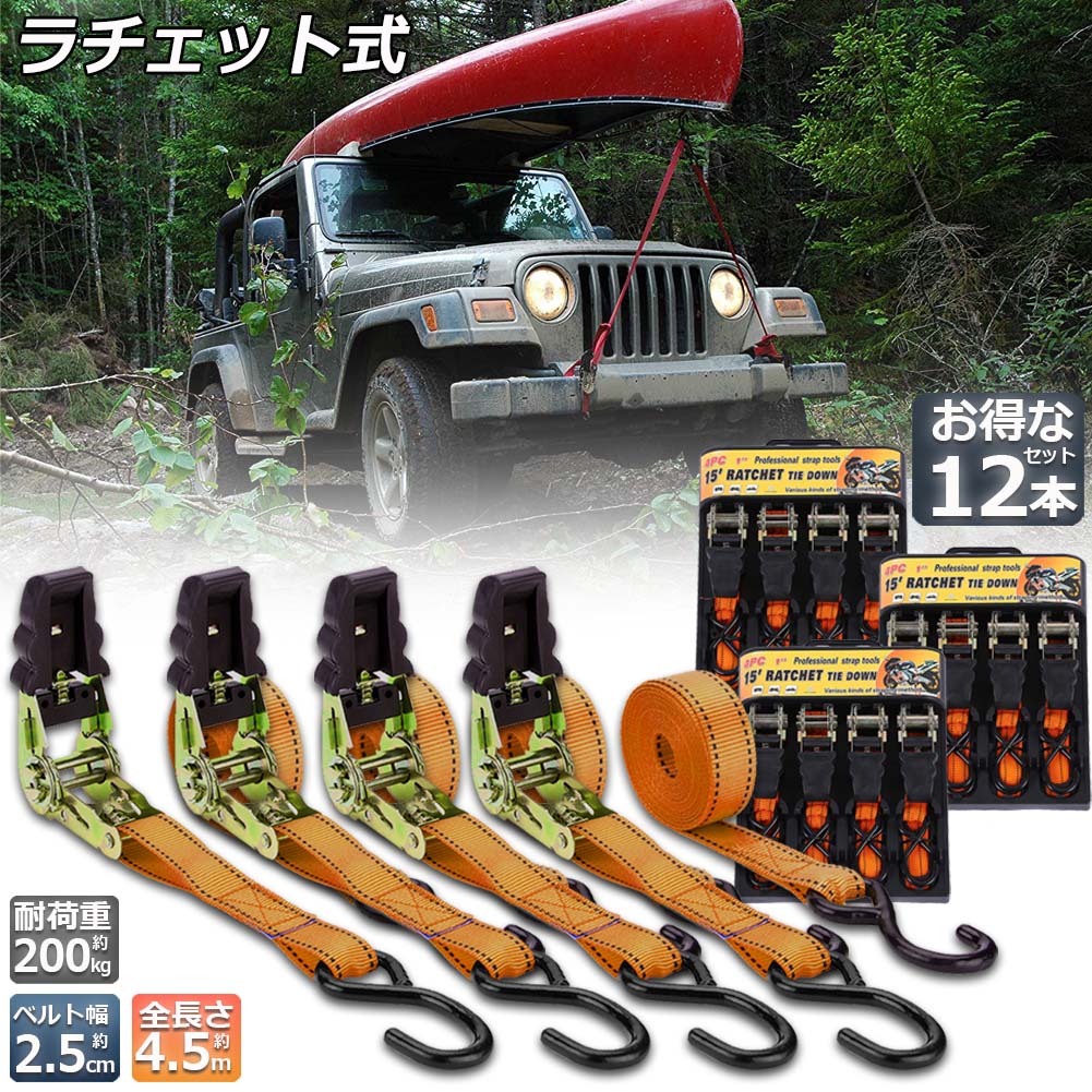 ラッシングベルト 荷締めベルト ラチェットベルト 4.5m 幅2.5cm 荷締機 固定ベルト タイダウンベルト らっしんぐベルト 引越し 運搬用 トラック輸送