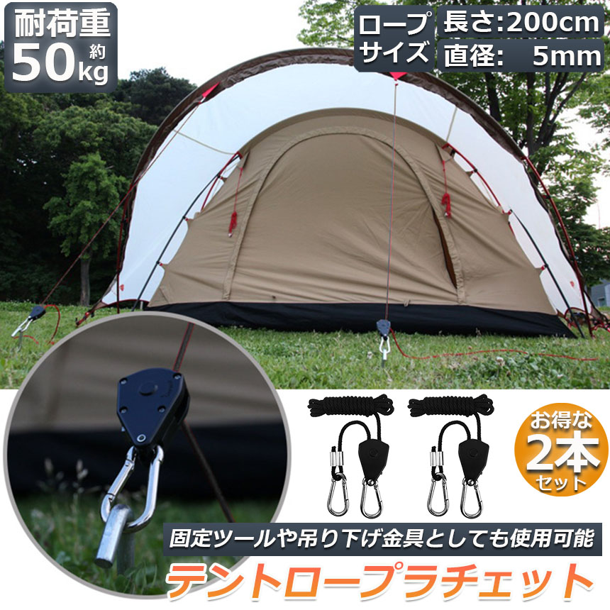 テント ロープ キャンプ バックル ロープラチェット 荷造りベルト 荷締機 調整ロープ 2m ハンガー 滑車 便利 タープテント BBQ アウト