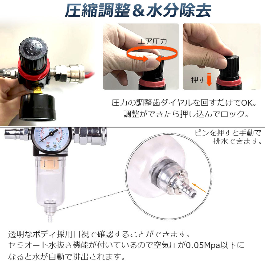 エアー レギュレーター ウォーターセパレーター エアーレギュレーター エアフィルター エアーツール 圧力計 エアツール 減圧弁 エアブラシ フィルター