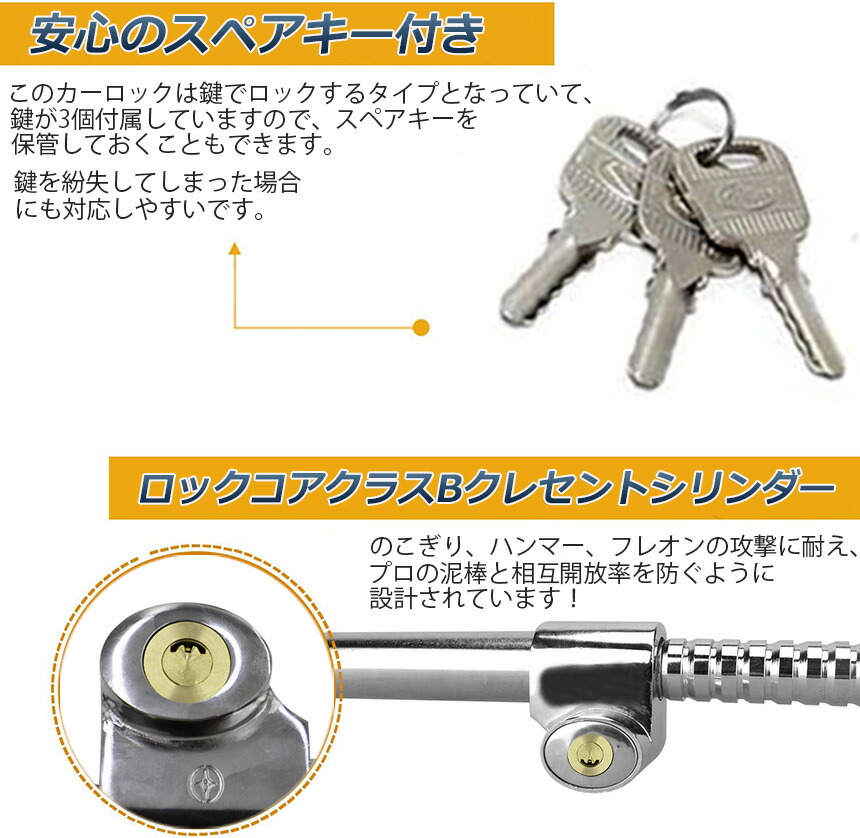 【スペアキー3本】本商品の鍵はメーカー、合鍵業者でも複製困難な特殊形状キーです。 車内に盗難が侵入しても心配がありません。(紛失にはご注意願います。)