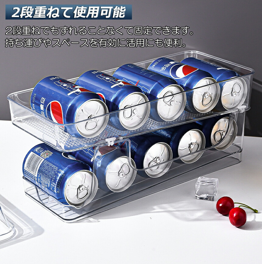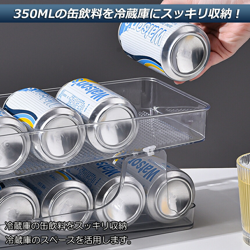 缶収納ラック ラック 缶ストッカー キッチン収納 缶ケース 冷蔵庫収納 キッチン収納 コンパクト 最大350ml缶 10缶 収納 二重仕上げラック デスクシェルフ<br>