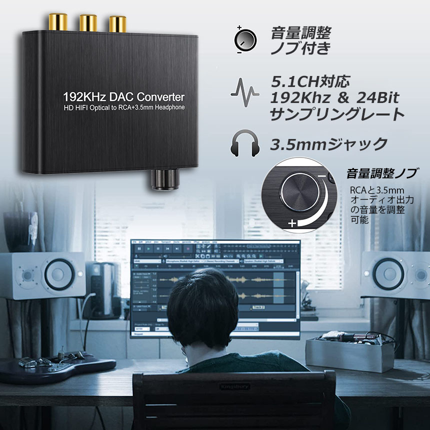 DAC コンバーター デジタル アナログ オーディオコンバーター 192kHz Dolby DTS AC 3 5.1CH SPDIF 同軸 トスリンクから