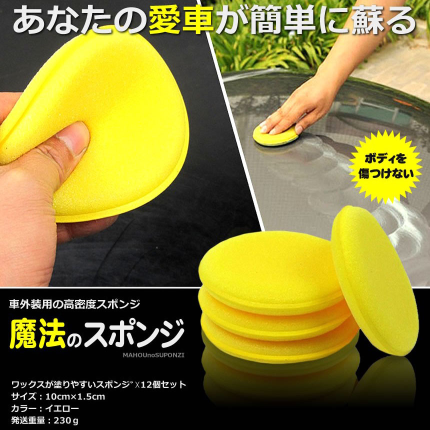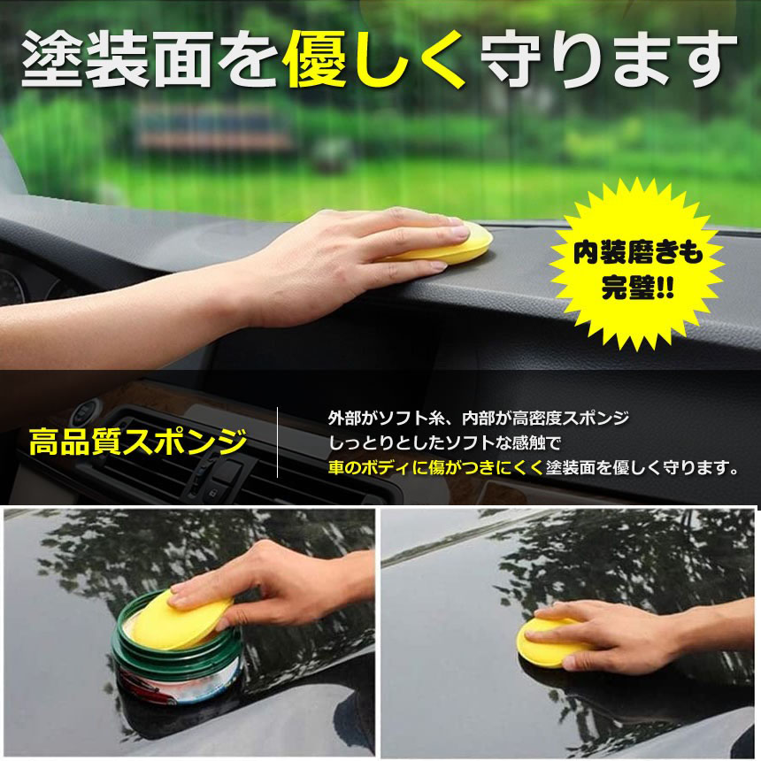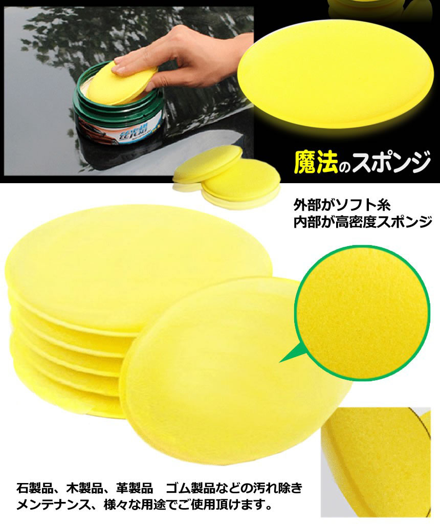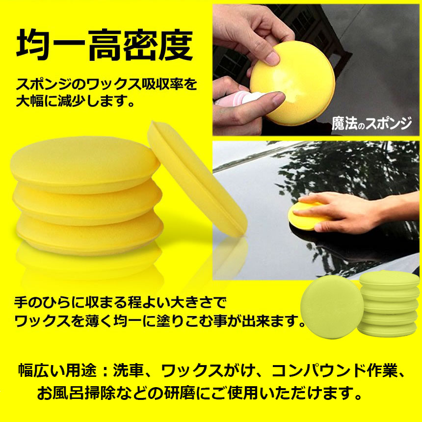 洗車スポンジ ワックス スポンジ 研磨スポンジ 直径10cm 丸型 ワックスアプリケーター ポリッシング ソフト 軽量 塗りやすい 汚れ落とし 光沢UP 洗車用品<br>