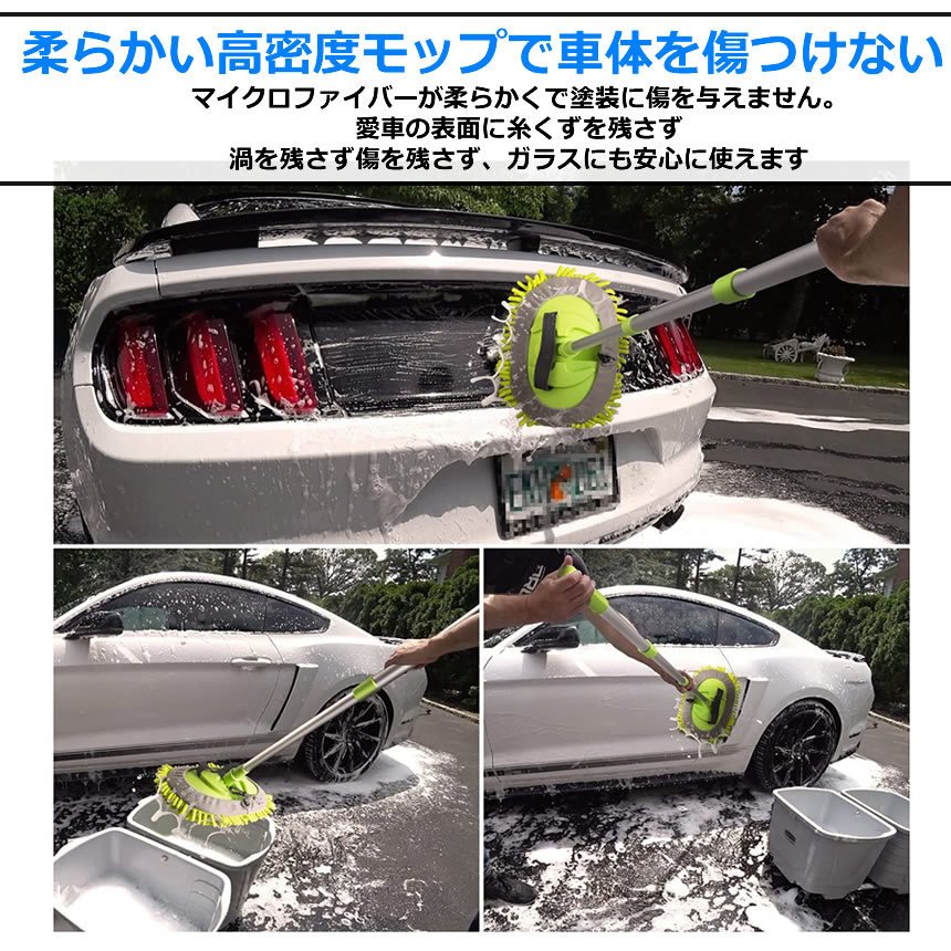 モップヘッドは高密度なシェニールを使っておりマイクロファイバーが柔らかくて塗装に傷を与えません。愛車の表面に糸くずを残さず、渦を残さず、傷を残さず、ガラスにも安心に使えますので、より楽に愛車を洗浄できます。