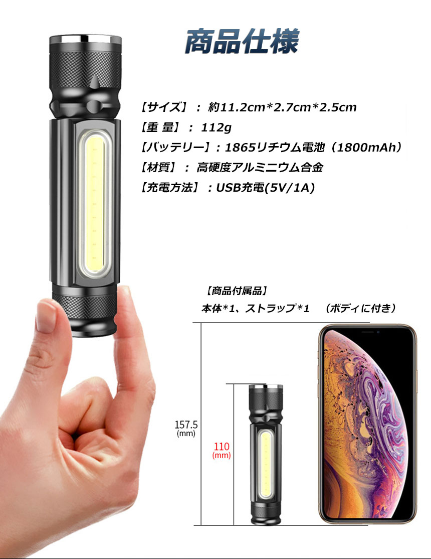 ご注意ください! この懐中電灯は、5V / 1Aの充電器で充電する必要があります。