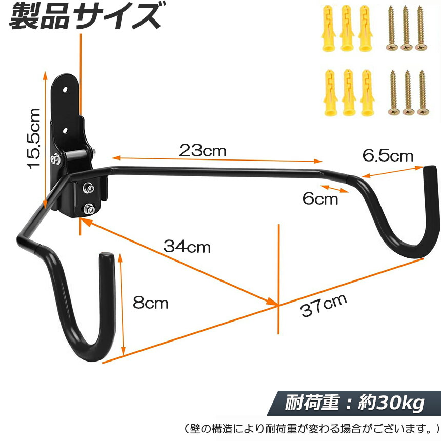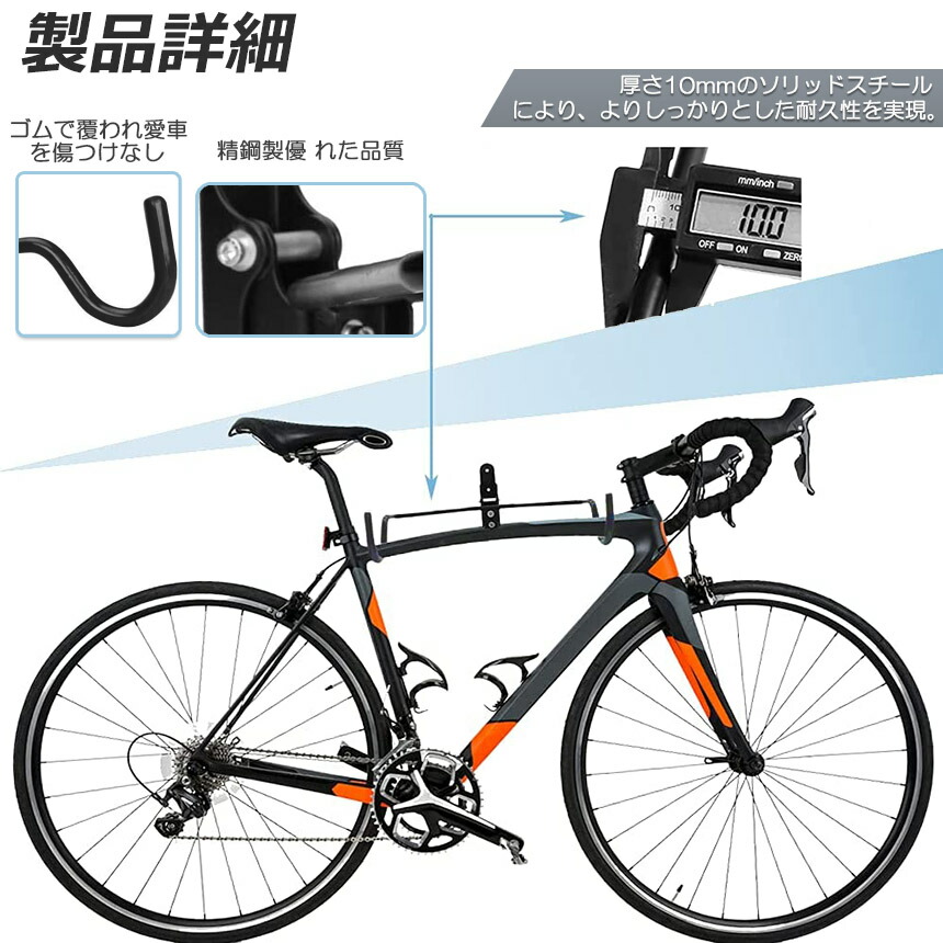 【高品質の素材】頑丈なスティール製で約30kgまでの自転車を支えることが 出来ますので、ショップでも自宅でも大活躍します。また、フックには保護用ラバーが装着され、自転車フレームへの傷つき防止できます。